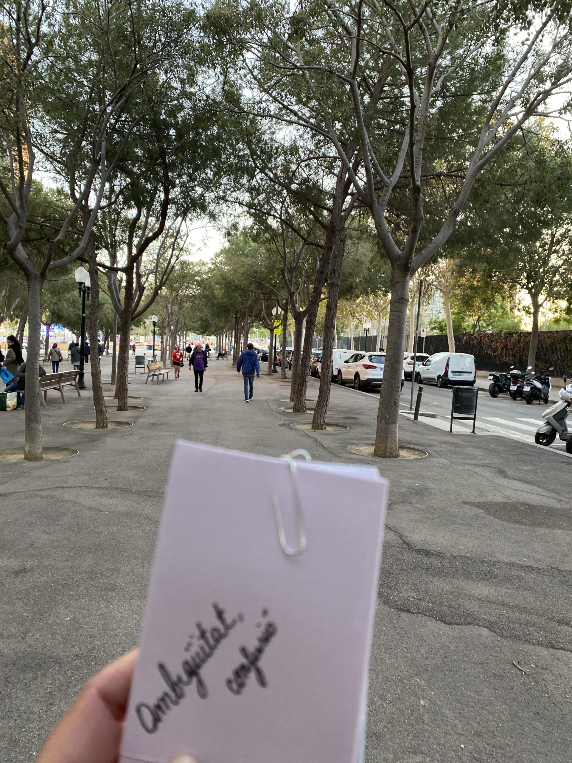 Vas per un camí peatonal i de sobte et trobes amb carratera i obres. És tranquil pero intranquil quan acabes el carrer. És confós.