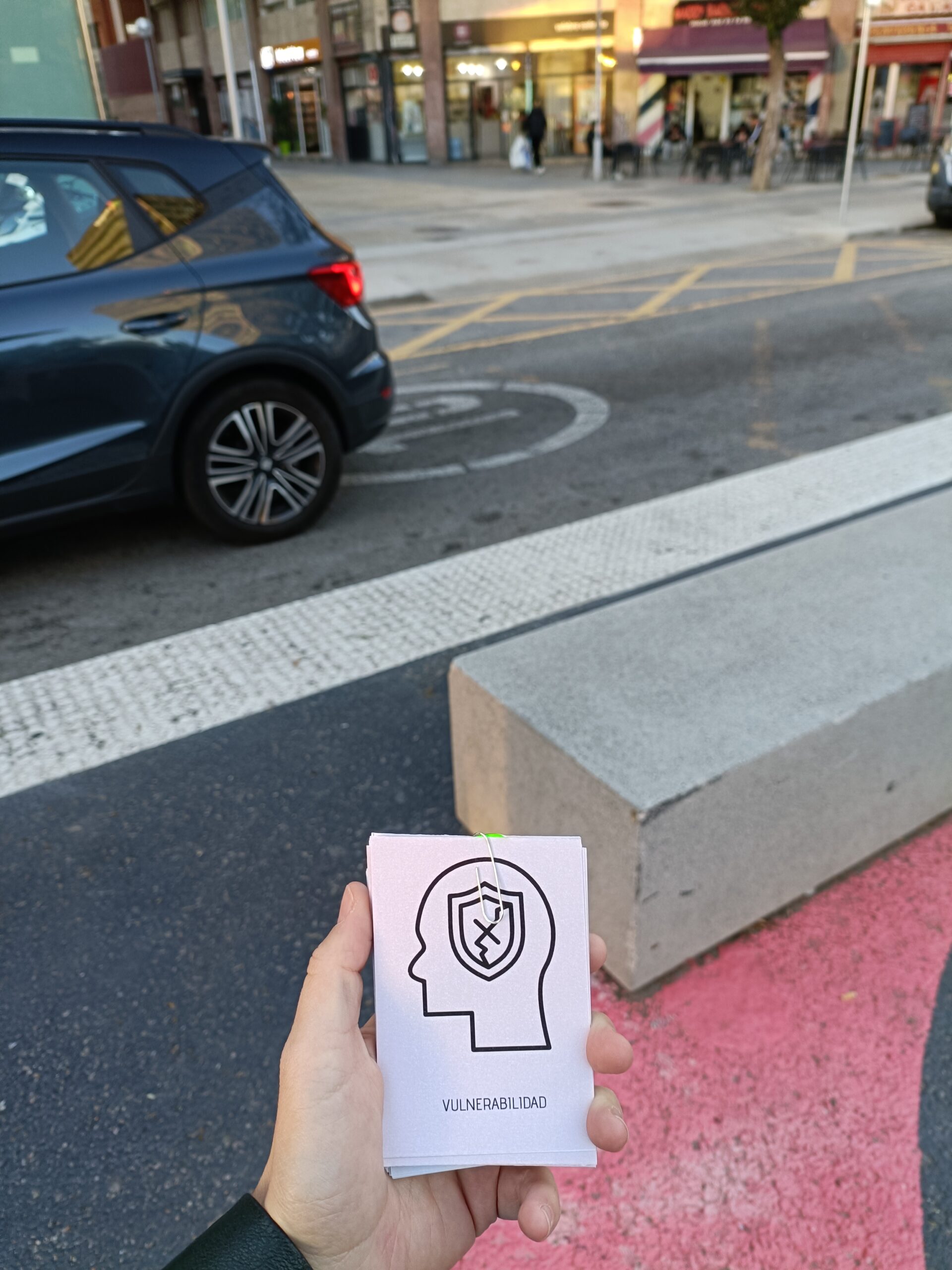 Poca protección desde la calle. Si hay un accidente, la persona sentada podria estar en peligro
